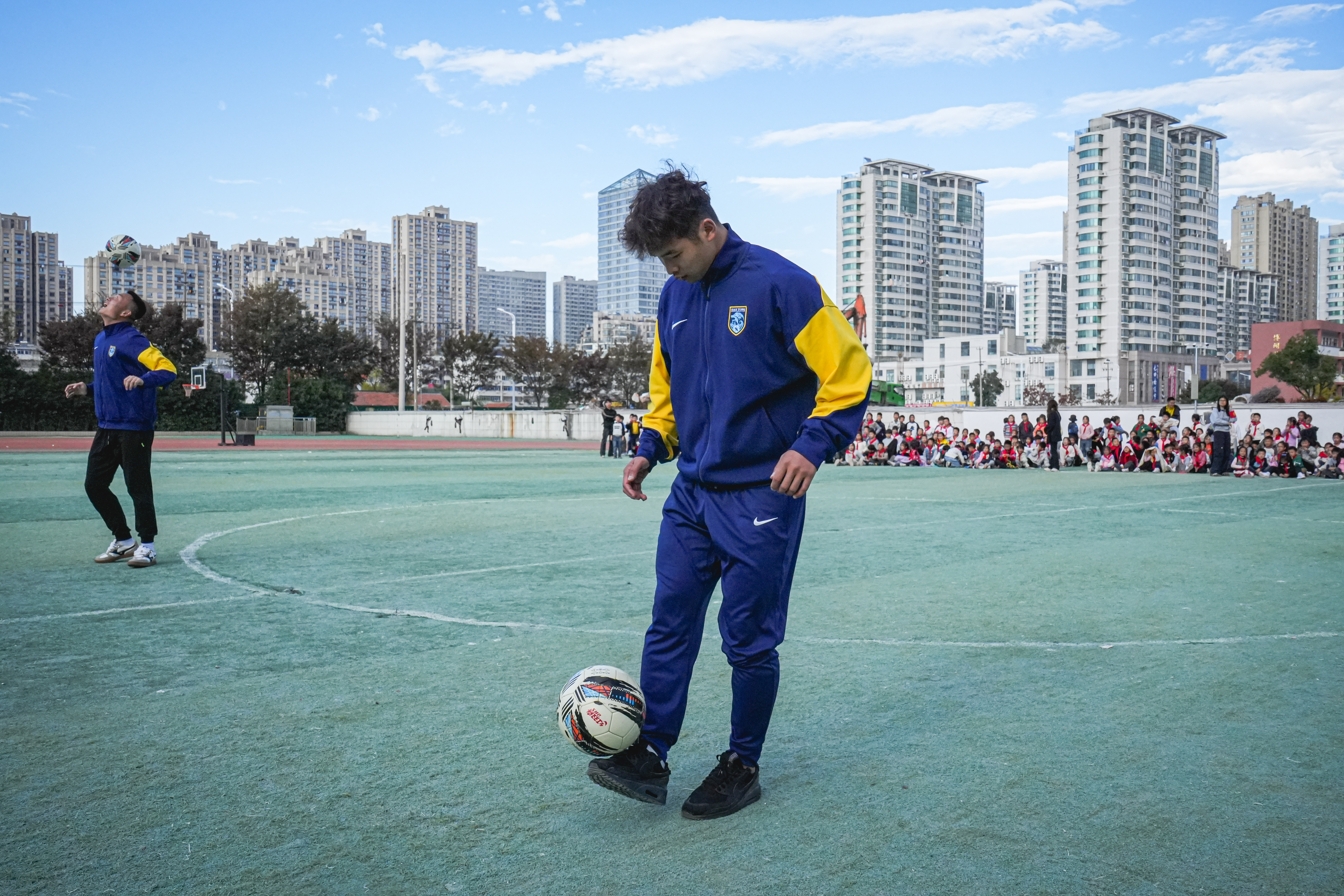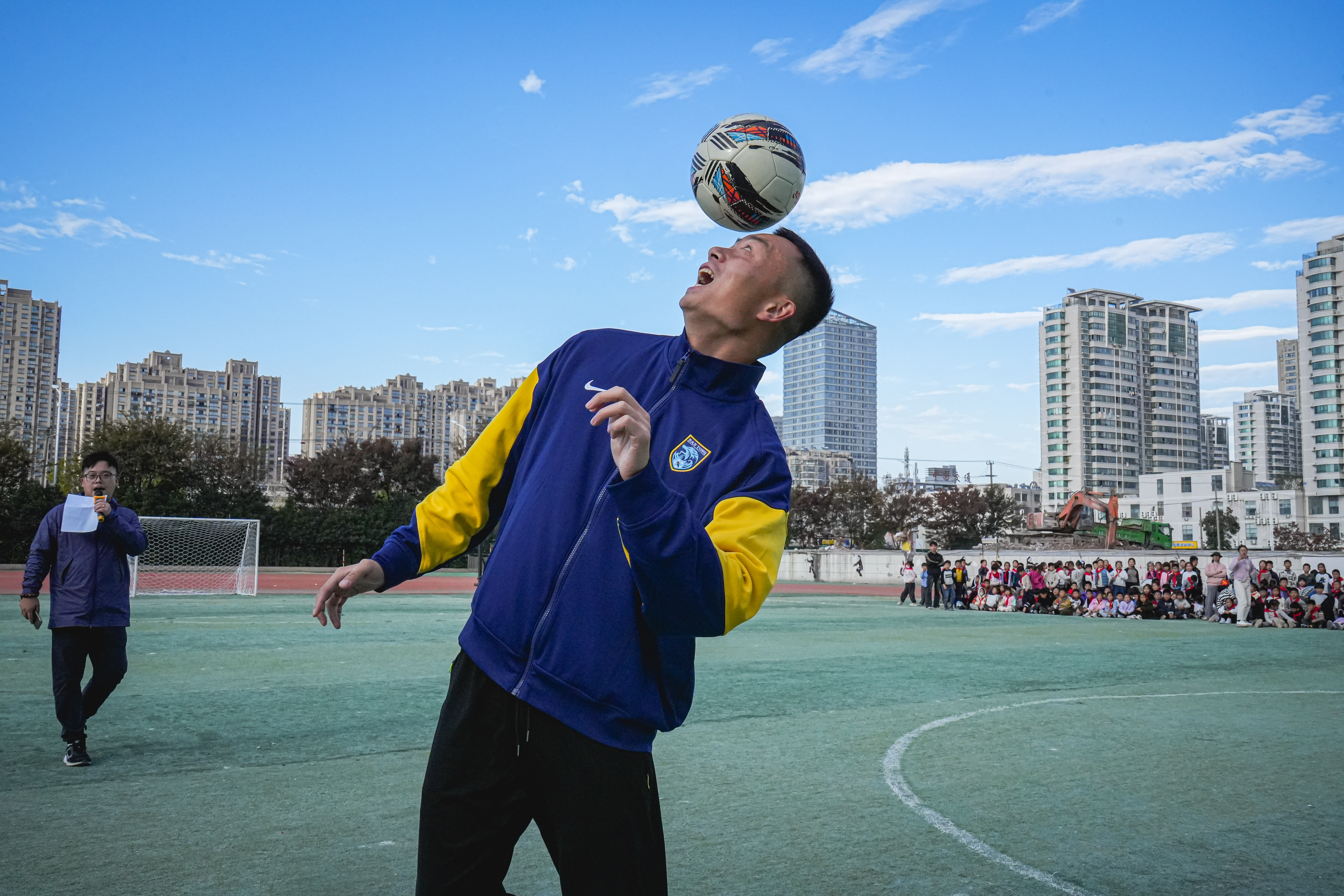 互动环节精彩纷呈。同学们与支云狼兵搭档协作,在欢声笑语中比拼技巧、增进默契;随后开启的趣味足球赛上,双方在实战中传递战术理念与拼搏精神,每一次精彩配合都引来现场阵阵掌声与呐喊。