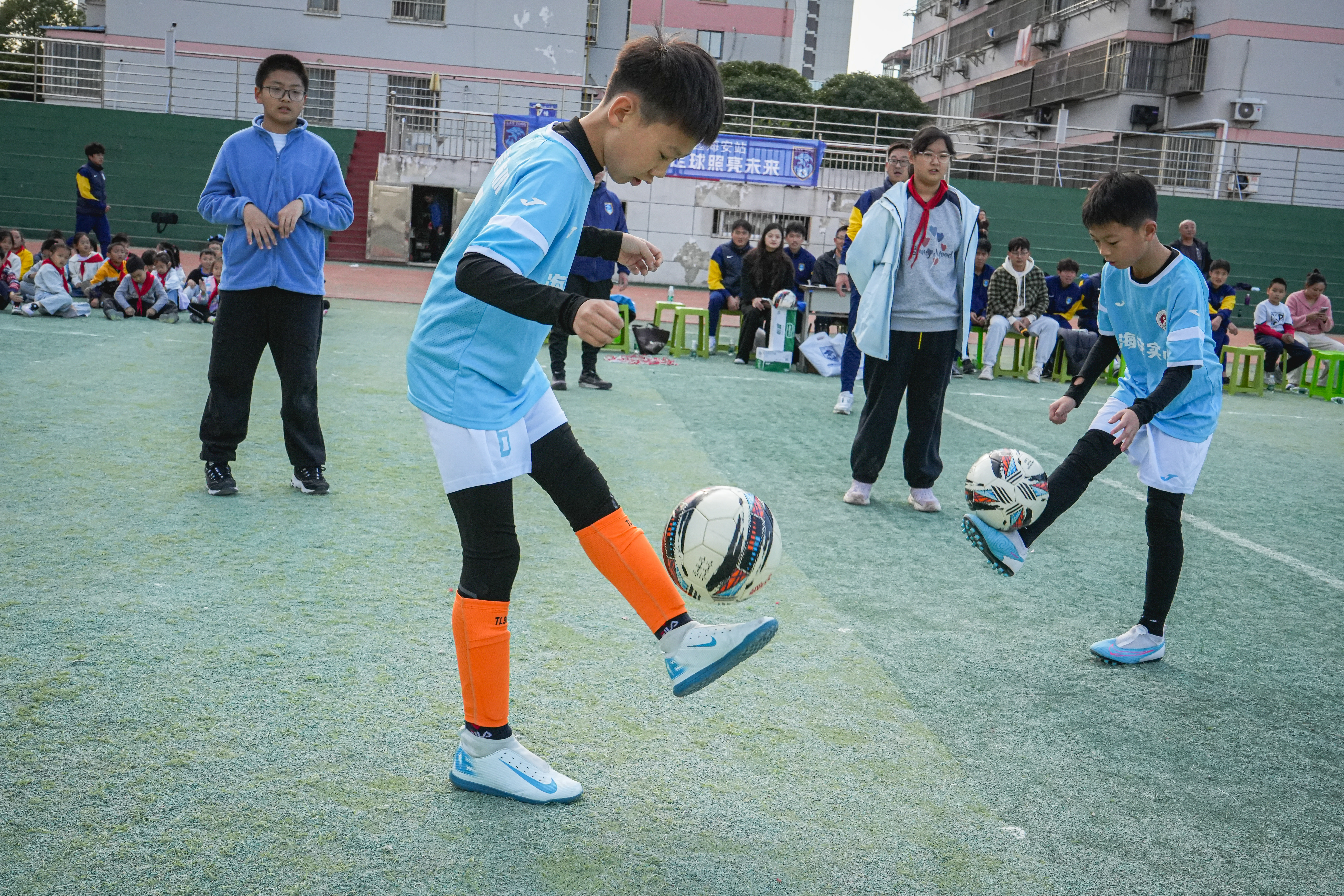 绿茵燃梦进校园,体教融合添活力!昨天下午,南通支云足球俱乐部走进海安市实验小学,开展“足球进校园”主题公益活动。一线队狼兵将士们与师生面对面互动,以专业指导、趣味体验,为孩子们播撒足球梦想的种子,让足球的热血与活力浸润校园。