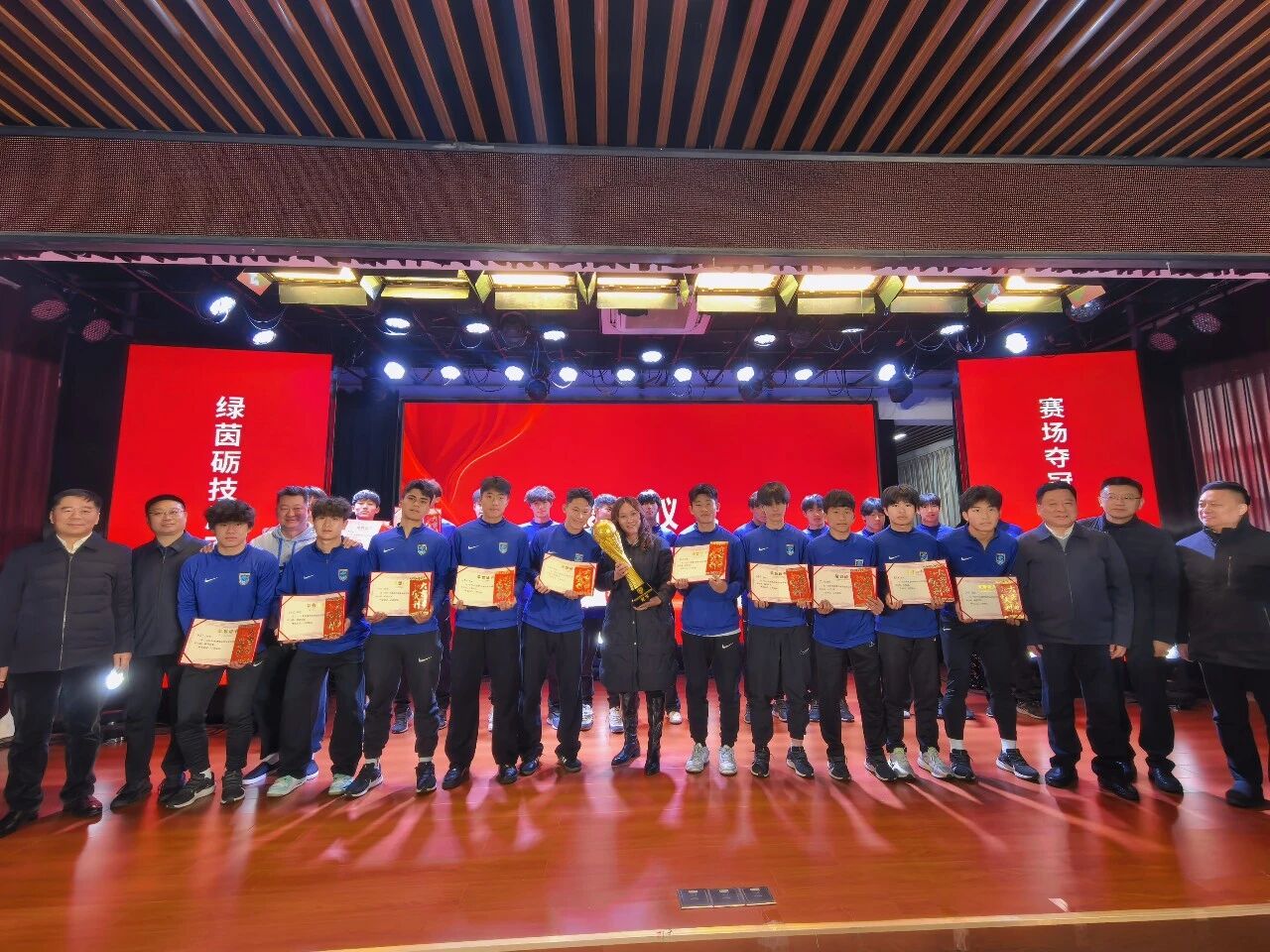 表彰与聘任仪式环节,领导们为获奖球员与优秀教练颁发荣誉证书及奖金。人社局胡晓勇局长在讲话中强调,“支云班”夺冠绝非偶然,它打破了文体与技能的传统边界,生动印证了职业技能与体育精神相辅相成的深刻内涵。他寄语学校要以此为契机,积极推广“支云班”的成功经验,打造技工教育特色名片;勉励全体学子把赛场上的拼搏精神转化为技能锤炼的不竭动力,校企携手并肩,共同培育担当时代重任的新时代技能人才。