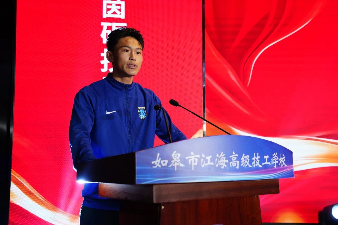 如皋队球员、江海高技学生张祥东:“这个冠军对我意义非凡,它连接着江海高级技校与支云俱乐部这两个让我成长的地方。在支云班,“工匠精神+狼性精神”的理念深入我心。“工匠精神”教会我在实训车间和球场上都追求极致;“狼性精神”则让我们在困境中不放弃,相互支撑,坚定信念。这个冠军,是一个圆满的句号,更是一个崭新的起点。它让我们证明,技工学子不仅能用技能报国,也能在足球赛场上为家乡赢得荣耀!我们会把这份冠军的底气,带回课堂、带回车间、带回人生的每一个赛场。”
