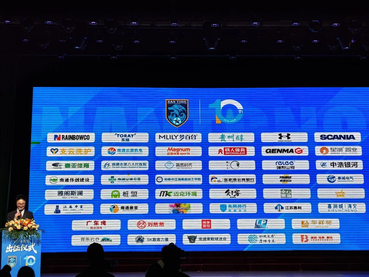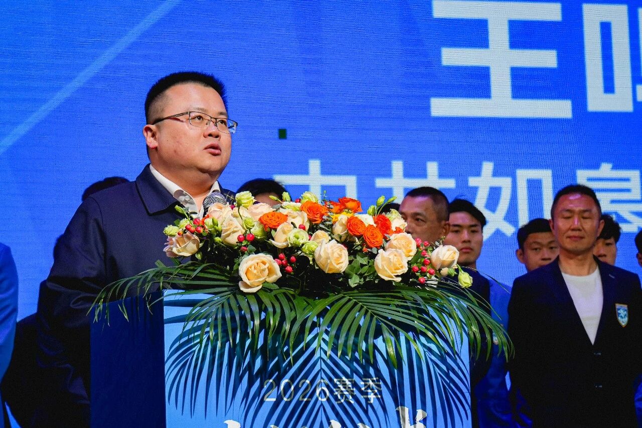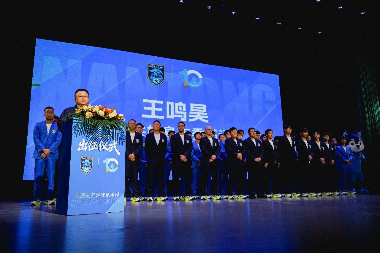 如皋市委书记王鸣昊上台讲话,他表示:2026年,是南通支云足球俱乐部建队十周年的荣耀时刻。十年前,这支承载着全市人民足球梦想的队伍扎根南通,以“三年冲甲、五年冲超”的信念启航,从2018赛季顺利完成冲甲目标,到2022赛季冲超成功点燃城市激情,支云足球俱乐部用十年奋斗书写了南通足球的励志传奇,也让全国球迷见识到了“狼啸江东、唯有支云”的英勇气魄。十年间,足球已深深融入全市人民的生活,支云的比赛日也成了广大球迷的节日,大家始终与球队风雨同舟,用热爱守护这份蓝色荣光。如今,南通支云以中甲为舞台再出发,全市球迷、如皋人民无不充满期待,我们将一如既往在主场为球队摇旗呐喊、加油助威,共同见证支云“狼兵”们的风采。