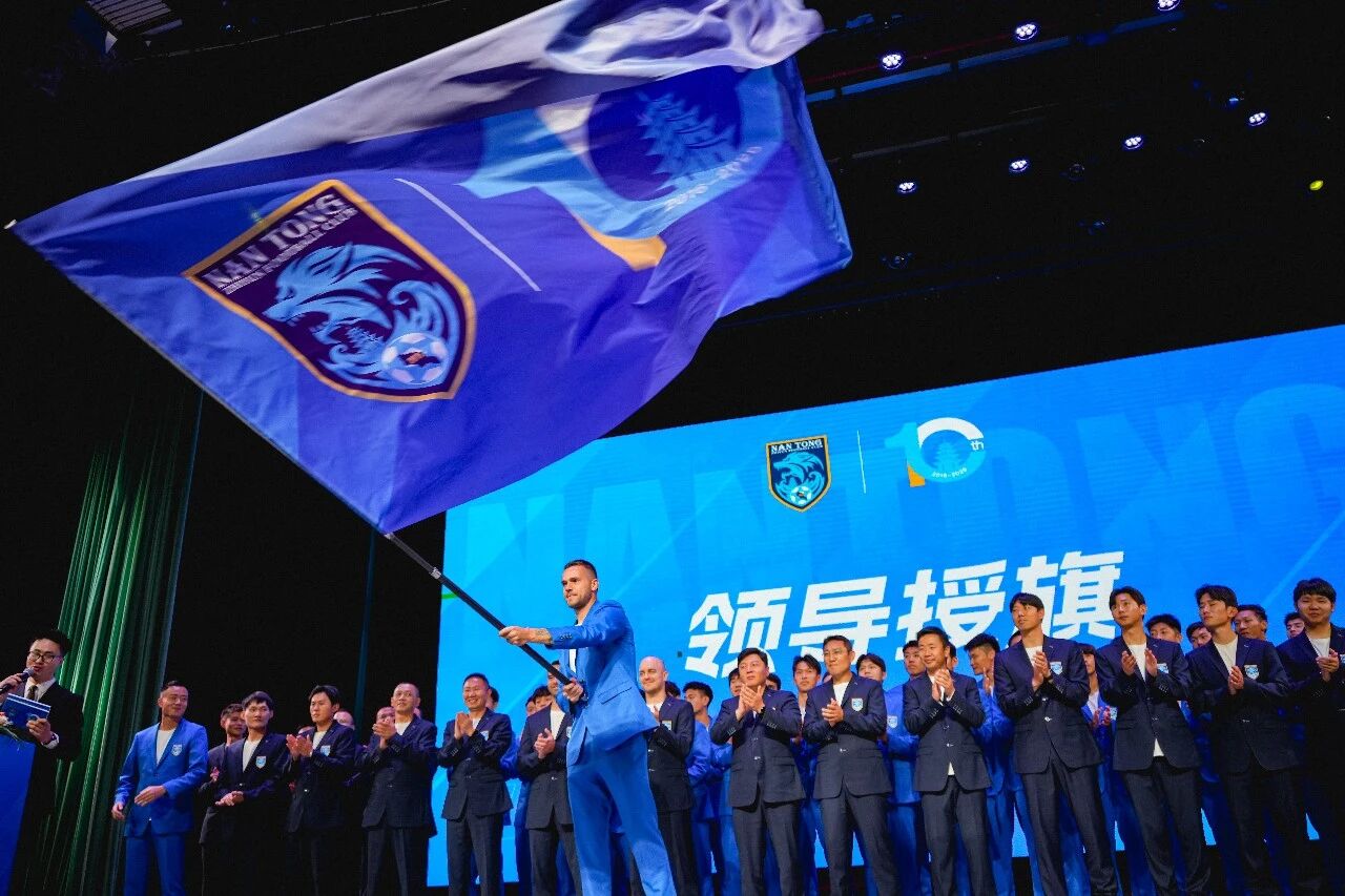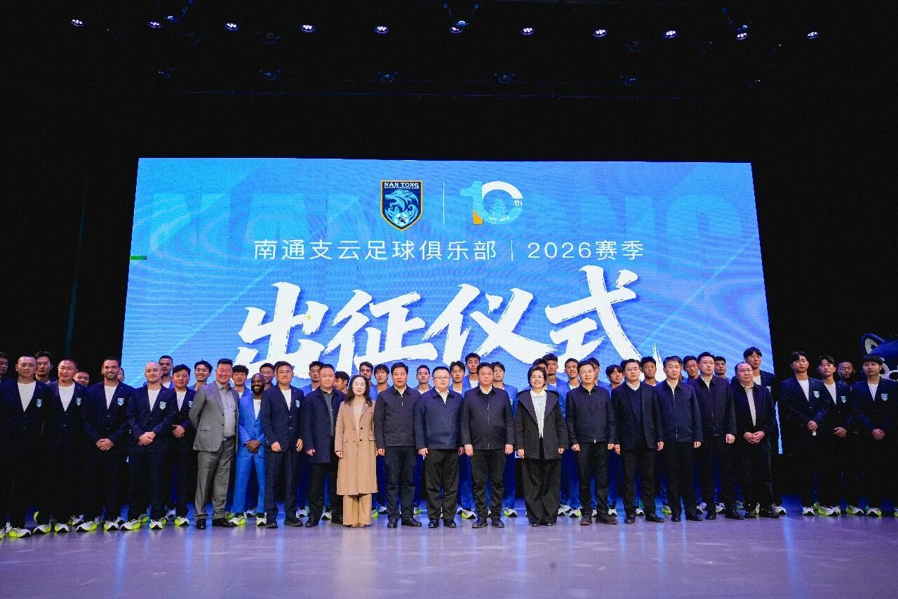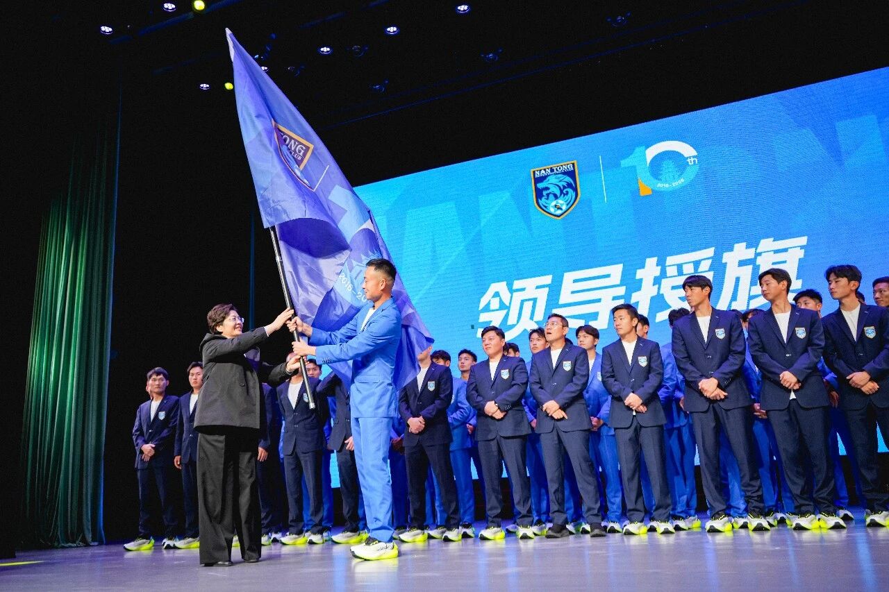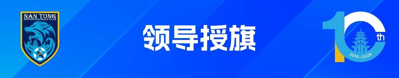 战旗猎猎,号角声声;授旗出征,使命在肩!南通市委常委、宣传部部长陈冬梅女士将象征使命与荣耀的出征战旗郑重授予队长。在全队的共同见证下,刘伟与科列夫高举支云大旗奋力挥舞。2026赛季,南通支云正式扬帆起航!