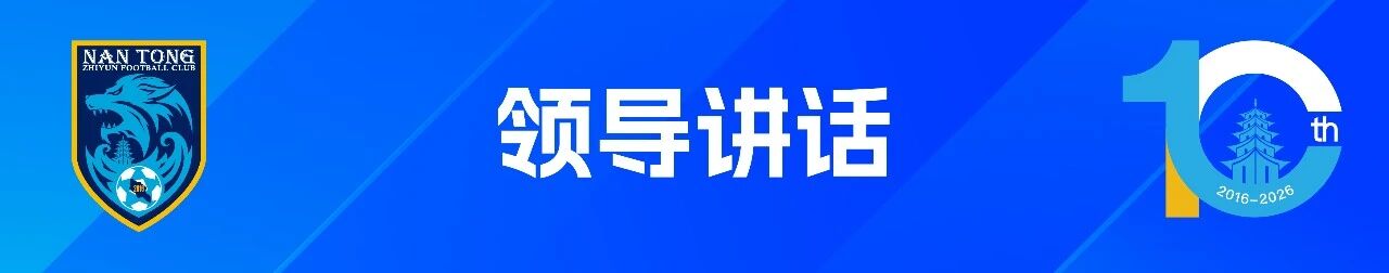 南通市人民政府副市长于立忠先生:十年磨一剑,砺得梅花香。2026年,恰逢南通支云足球俱乐部成立十周年。回首这十年,我们共同见证了支云从青涩启程到深耕绿茵,你们用一场场汗水与呐喊交织的战斗,铸就了“狼啸江东,唯有支云”的铮铮誓言,更将足球精神深深融入南通这座江海名城的血脉之中。我们也欣喜地看到,支云俱乐部在追求竞技成绩的同时,积极承担社会责任,深耕青训沃土,与南通大学共同成立了支云足球学院,为“苏超”等赛事提供了足球青训人才。同时,俱乐部坚持市场化探索,通过发展赛事经济、推动文商体旅融合,激活了城市消费新场景,让“支云”这个IP,成为南通文化输出的闪亮名片。