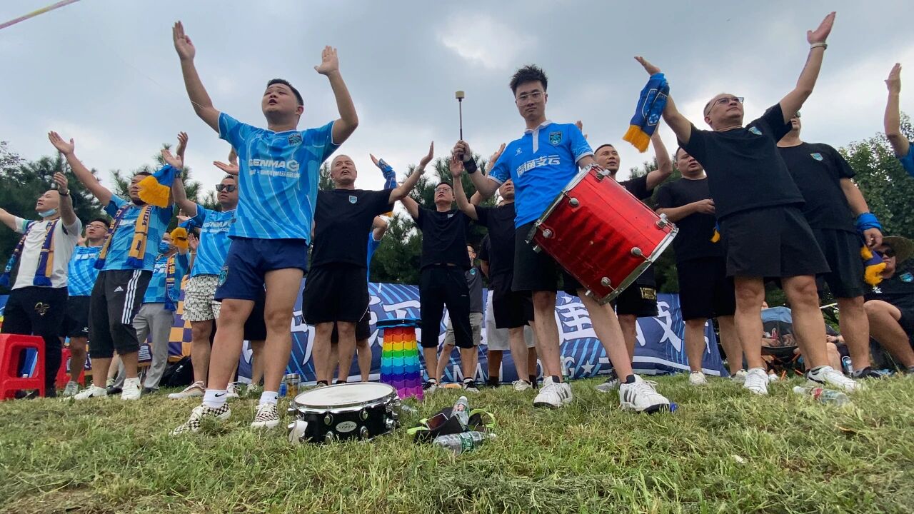 紧接着的2020-2022年,疫情突袭,赛会制成为常态。物理的距离可以阻隔相聚,却无法冷却心中的热爱。无论比赛被安排在哪个封闭的远方赛区,“支云战斗”的信念之火从未熄灭。我们想方设法“云相聚”、“云助威”,用各种形式让支云的将士们知道:那抹蓝色,永远是他们身后最坚实的后盾!在唐山赛区,我和几位同样疯狂的伙伴自驾十几个小时,星夜兼程奔赴球场。多年的等待与追随,终于迎来了最辉煌的加冕。2022年,历史性的一刻终于到来——支云成功冲超!