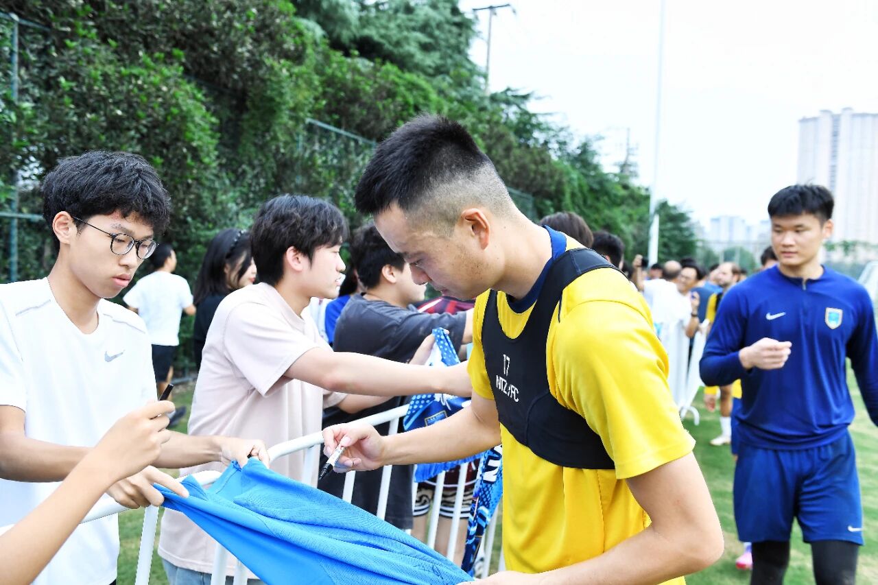 活动伊始,训练基地的绿茵场便成为了大家的焦点。在主教练金大仪的带领下,一线队将士们开启了又一天的备战训练。热身拉伸、分组对抗、战术演练、射门练习......1个多小时的训练课,球迷的呐喊与球员奋斗的身影交相呼应,成为了这场双向奔赴的最佳注脚。