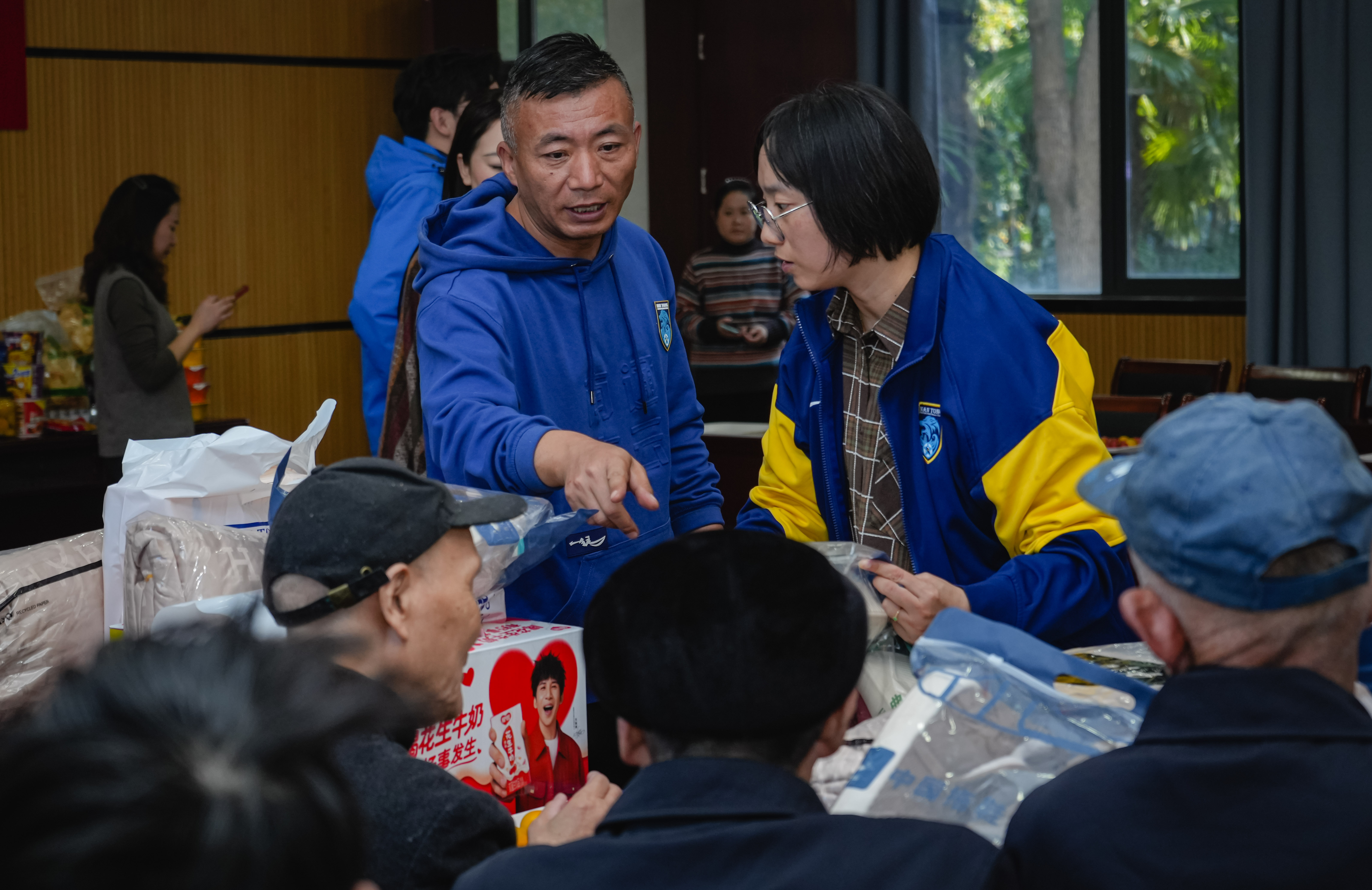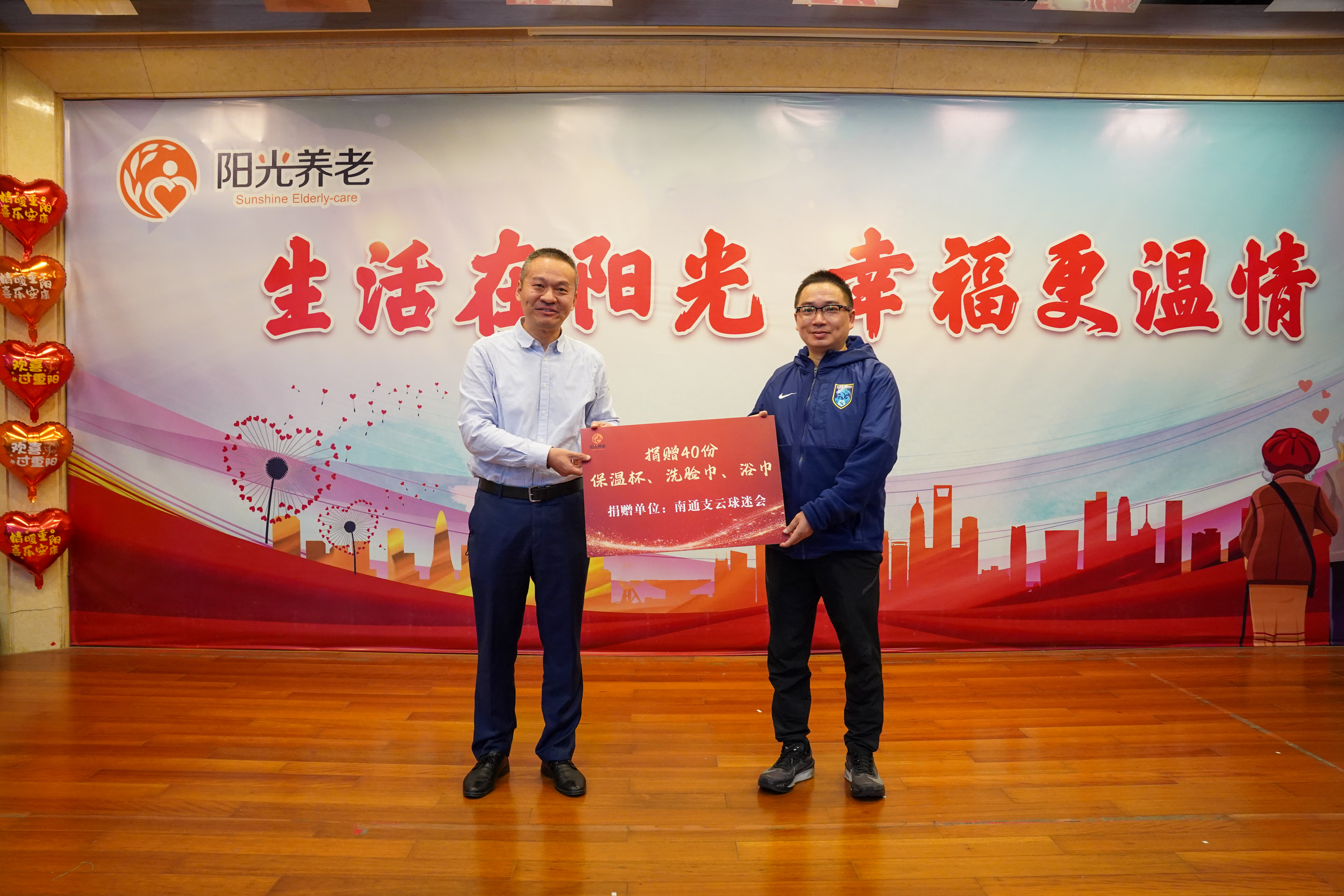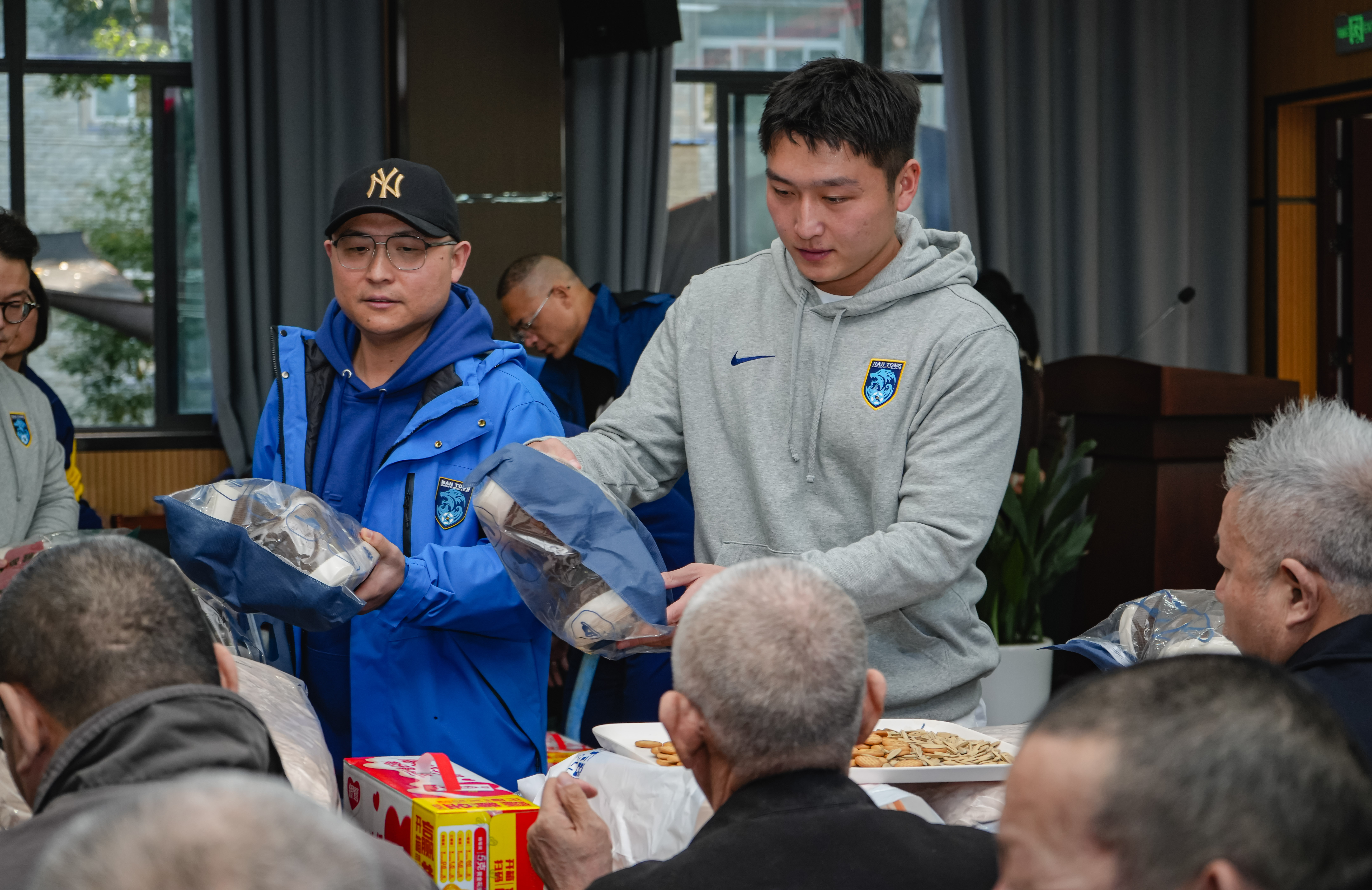 公益路上从不缺少同行者。南通東戰球迷会、南通江海蓝韵球迷会、如皋战狼球迷会、南通烈焰女子球迷会、白云公益联盟以及皋城战斗小组的球迷代表自发参与到此次公益活动中,不仅陪伴长者聊天解闷,还贴心地送上了床品四件套、保温杯等生活物资。同时,俱乐部也特别鸣谢中国邮政集团南通市城区分公司、江苏启宸新材料有限公司对本次活动的大力赞助。