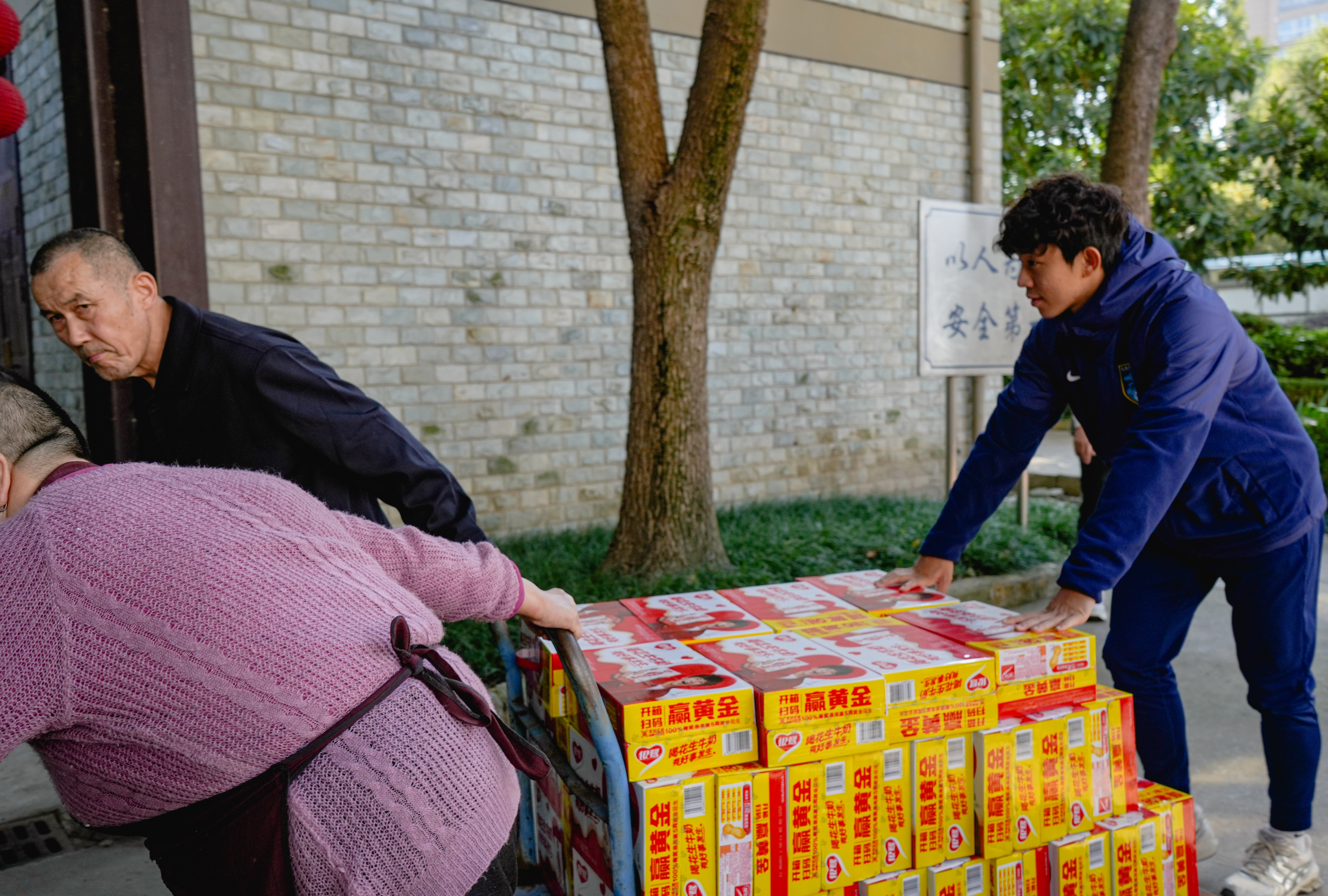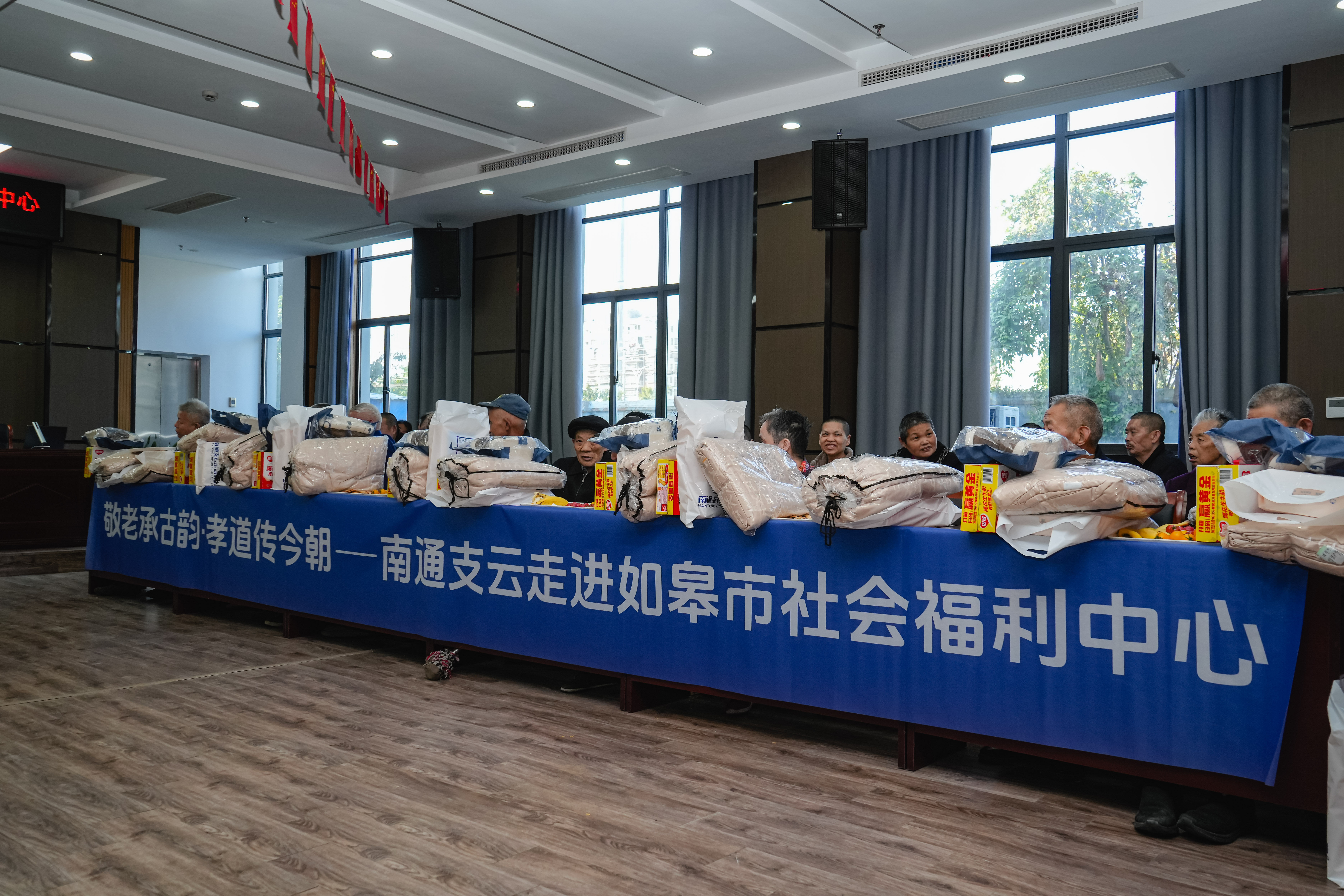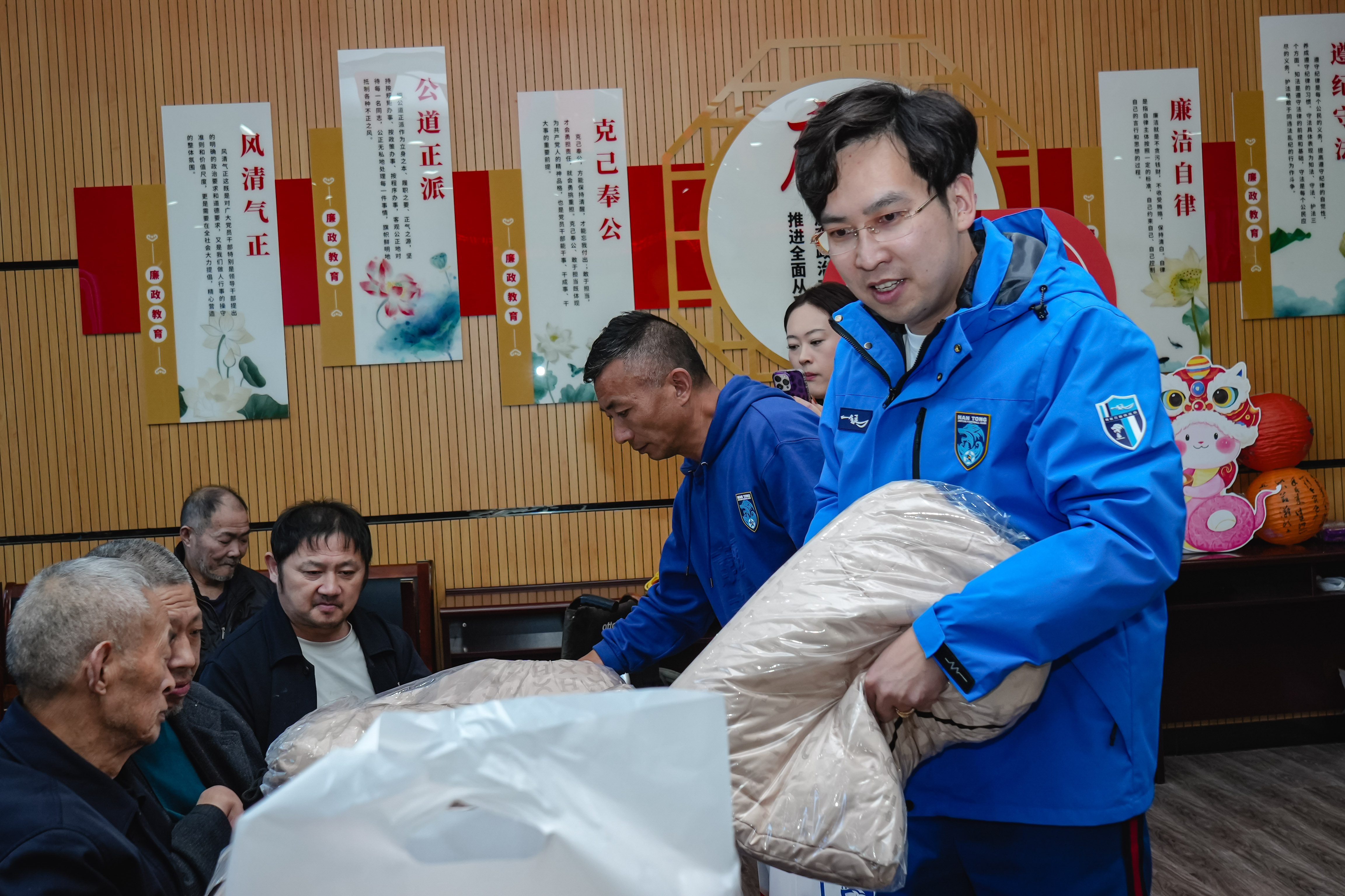 公益路上从不缺少同行者。南通東戰球迷会、南通江海蓝韵球迷会、如皋战狼球迷会、南通烈焰女子球迷会、白云公益联盟以及皋城战斗小组的球迷代表自发参与到此次公益活动中,不仅陪伴长者聊天解闷,还贴心地送上了床品四件套、保温杯等生活物资。同时,俱乐部也特别鸣谢中国邮政集团南通市城区分公司、江苏启宸新材料有限公司对本次活动的大力赞助。