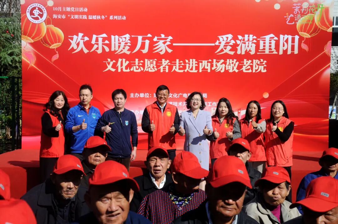海安通海蓝魂球迷会也在今天联合海安义工联等相关部门一起在西场敬老院举办了重阳节“欢乐暖万家-爱满重阳”慰问活动,向老年人送上关爱,传递敬老爱老文明新风尚。舞蹈、黄梅戏、京剧等大家喜闻乐见的节目轮番上演,赢得一阵又一阵的掌声和喝彩声。