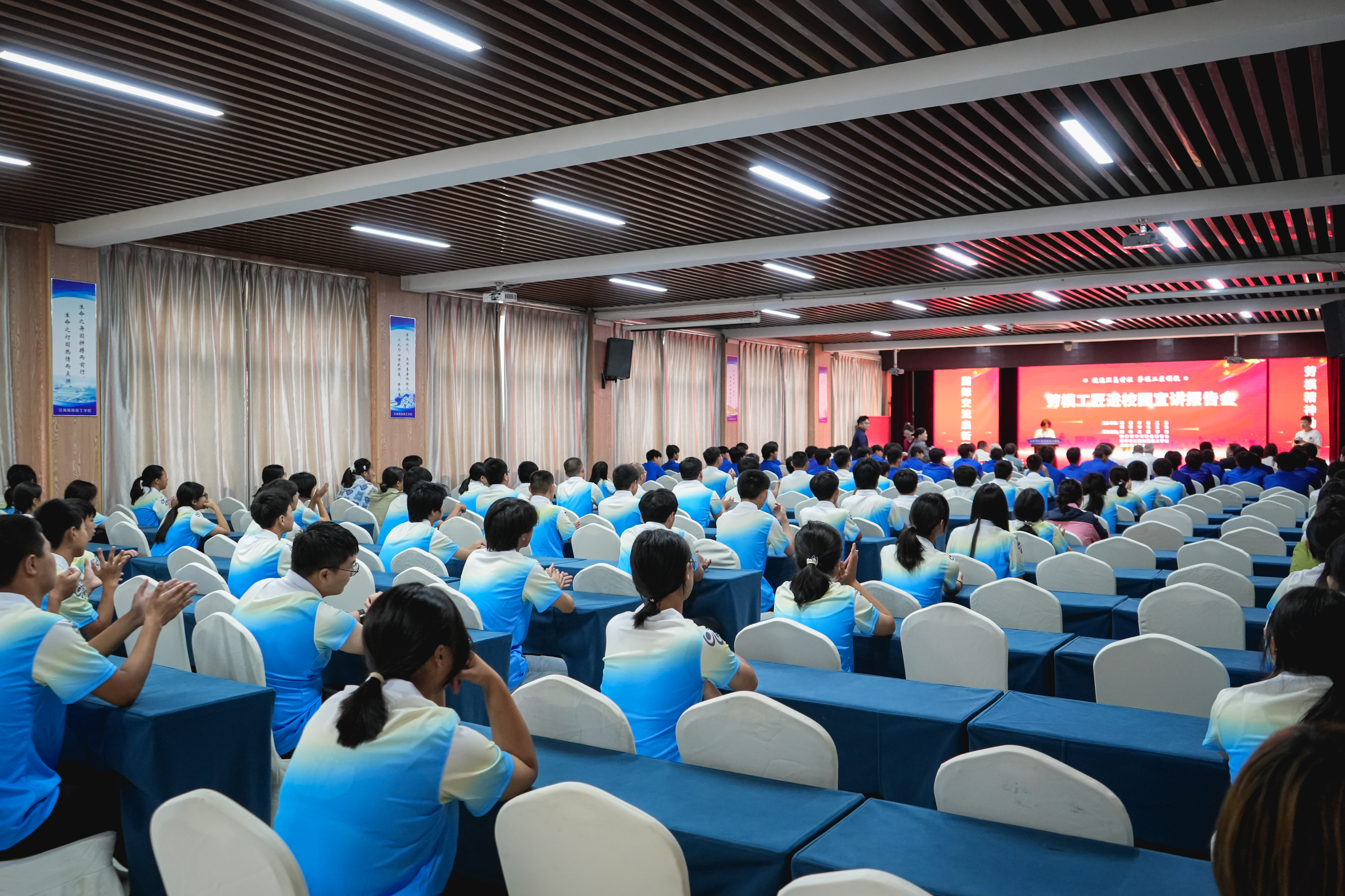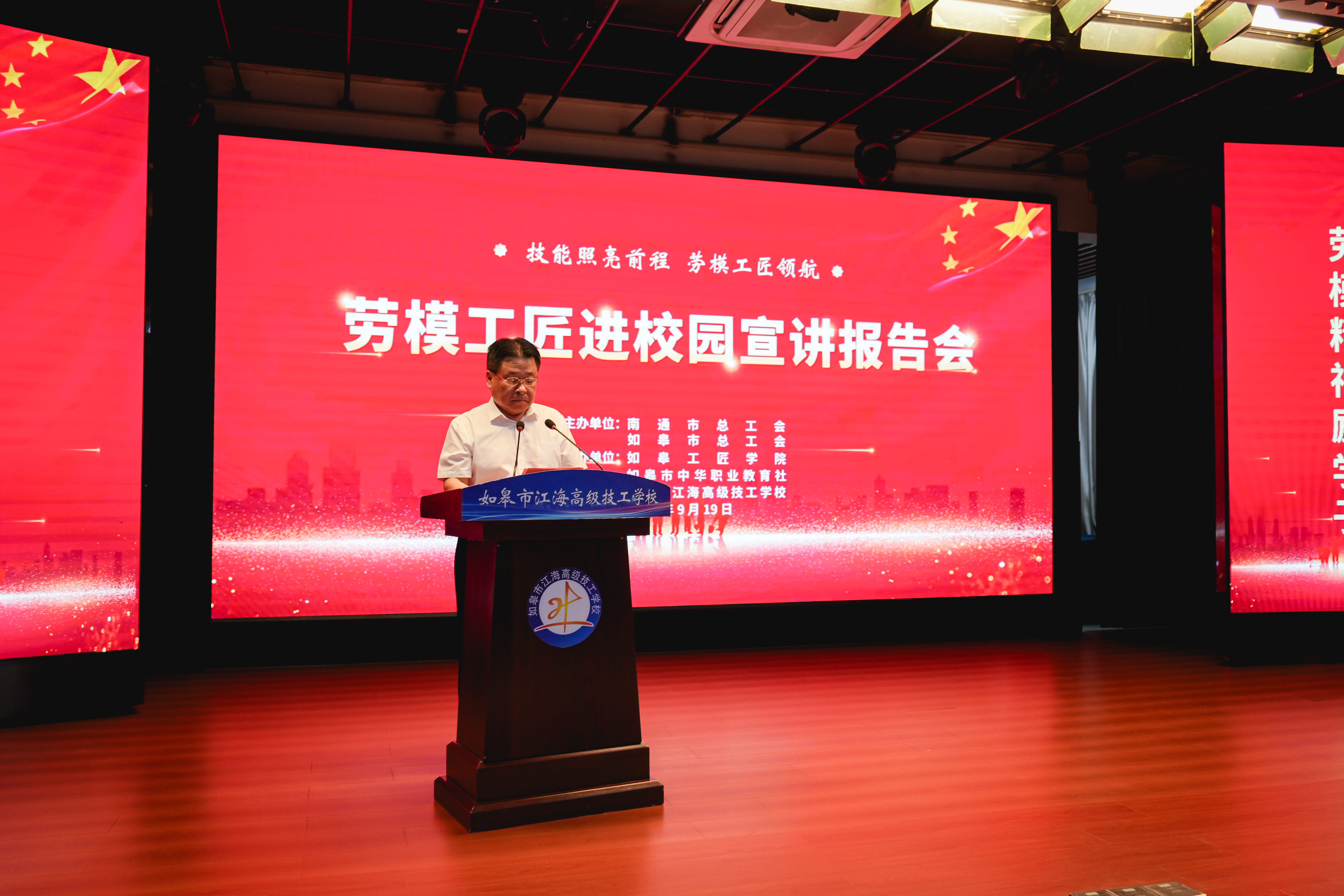 为厚植校园工匠文化,涵养学生敬业精神,9月19日,如皋市江海高级技工学校“劳模工匠进校园”宣讲报告会盛大启幕。如皋市足球运动协会代表、南通支云足球俱乐部代表以及支云U17和U19梯队的在校生们也来到现场,共同见证这场匠心与青春的对话。