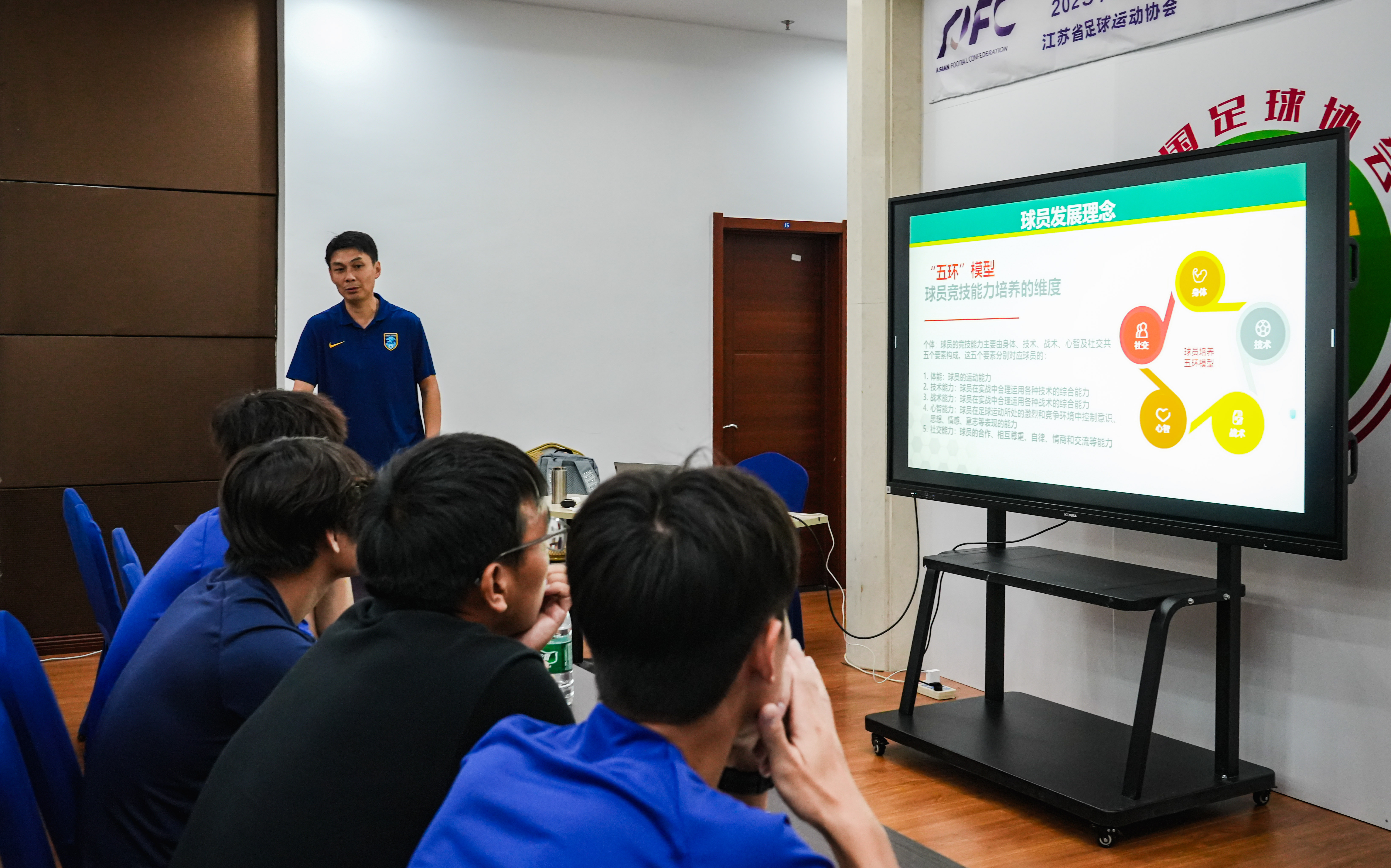 亚足联/中国足协A级教练员讲师、职业级教练员、支云青训总监戴振澎坐镇主讲。他以球员培养的五环模型(身体、技术、战术、心智、社交)为核心,以“谦虚、尊重、团队、理想、坚持”为青少年发展的重要指向,以 “球员为核心”构建执教与训练体系,在培训中将实战经验与俱乐部青训理念深度融合,为教练们提供了极具操作性的指导方案。